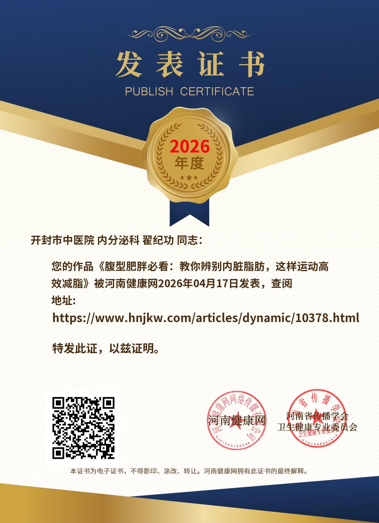 发表证书