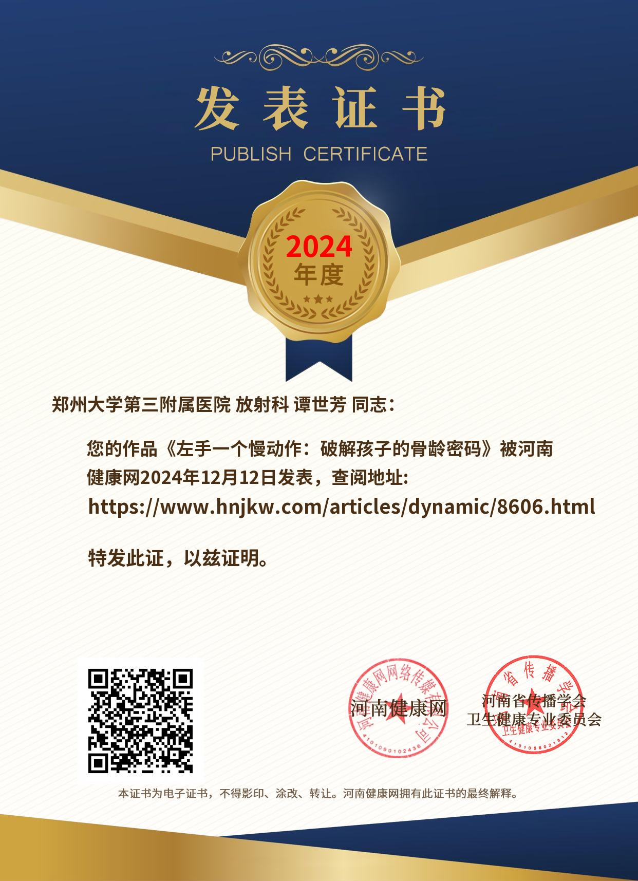 发表证书