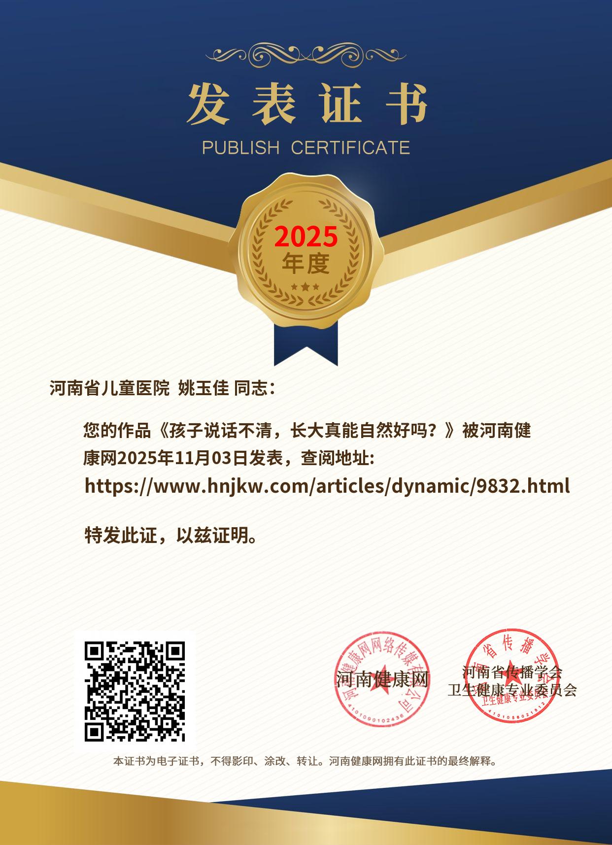 发表证书