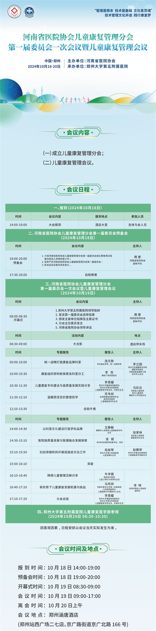 聚焦儿童康复管理领域的重量级会议——河南省医院协会儿童康复管理分会第一届委员会一次会议暨2024年会,将于2024年10月18日至20日在河南省郑州市涵唐酒店隆重举行。这不仅标志着河南省在儿童康复管理领域迈出了坚实的一步,更预示着全国范围内儿童康复管理事业将迎来新的发展机遇。