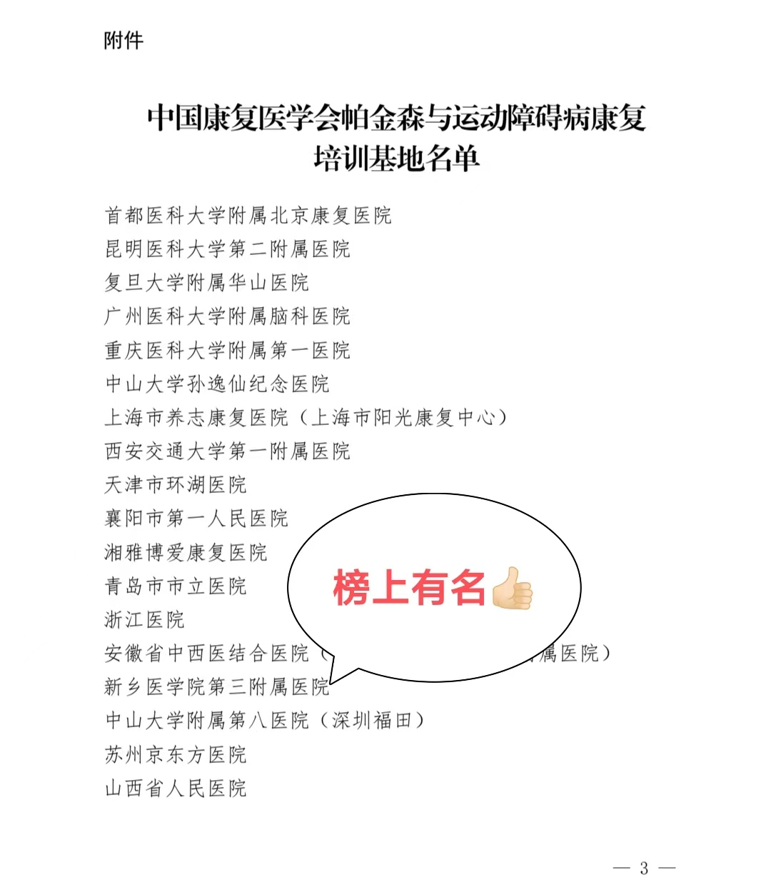 【喜讯】全国仅18家!新医三附院成为“中国康复医学会帕金森与运动障碍病康复培训基地”