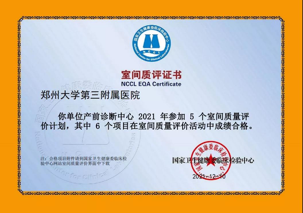 喜讯!郑大三附院(省妇幼保健院)产前诊断中心顺利通过2021年室间质评