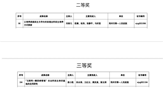 近日,河南省卫生健康委员会颁布了《关于公布2021年河南省医学教育研究项目立项教学成果和优质课评选结果的通知》(豫卫科教〔2021〕33号)文件,郑州市第一人民医院喜获佳绩,这也是对医院科研教学水平的充分肯定。