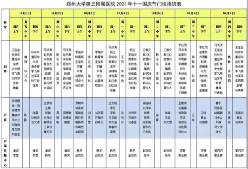 国庆假期正常坐诊,郑大三附院(省妇幼保健院)2021年“十一”期间门诊排班表