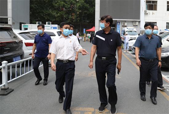 8月11日下午,河南省卫健委二级巡视员 田常俊,郑州市卫生健康委党组成员、副调研员王秉贵一行就郑州市三院北部院区疫情防控工作进行专项督导。河南中医药大学第一附属医院副院长王海峰、郑州市三院院长郭磊及相关职能科室负责人陪同。